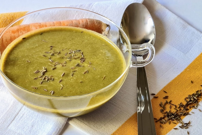 Répartissez dans des bols individuels et saupoudrez de quelques graines de cumin entier.