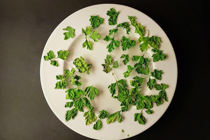 Encore une astuce de Thierry Marx pour ne pas laisser vos fines herbes flétrir dans un verre et les utiliser à tout moment. Faites de même avec le vert de poireaux ou d’oignons nouveaux, ne le jetez surtout pas, vous en tirerez une poudre très parfumée.