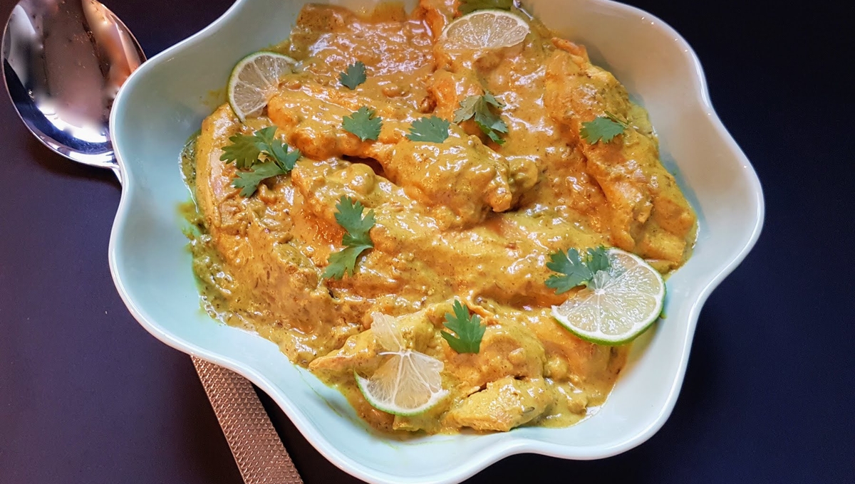 En fin de cuisson du poulet, arrosez avec les jus de citron vert pressé, remuez et saupoudrez éventuellement de quelques feuilles de coriandre.