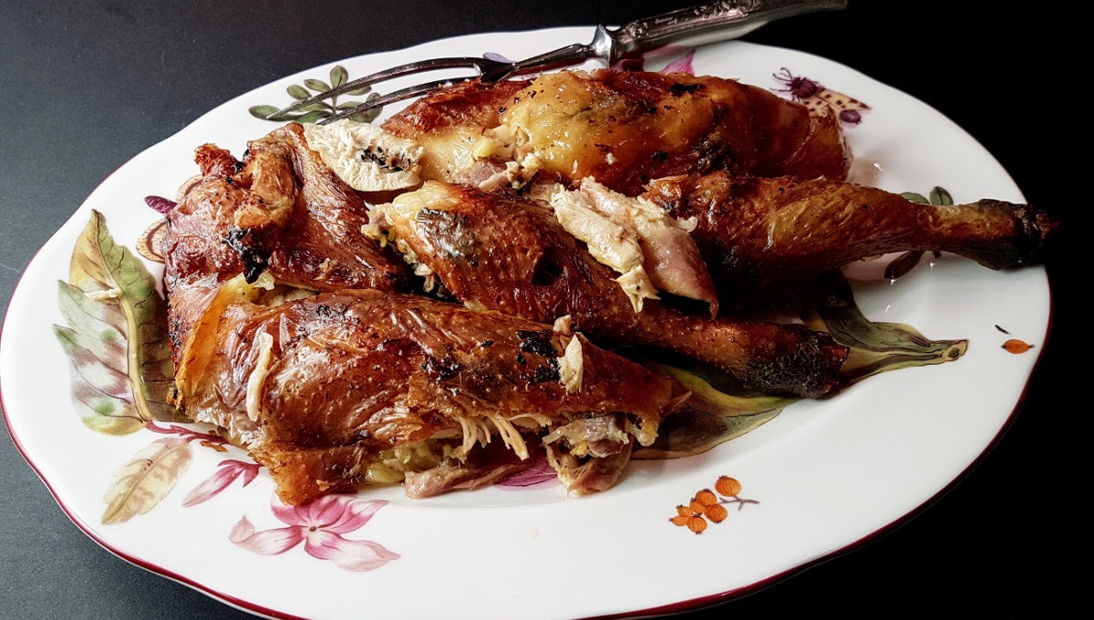 Retournez-le de l’autre côté pour une autre heure (un peu moins si le poulet fait moins de 2 kilos : comptez en tout, une demi-heure par livre).