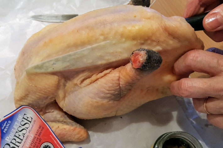 “N’oubliez pas de garder le cou, les abats et la carcasse pour cuire un bouillon de volaille maison.”