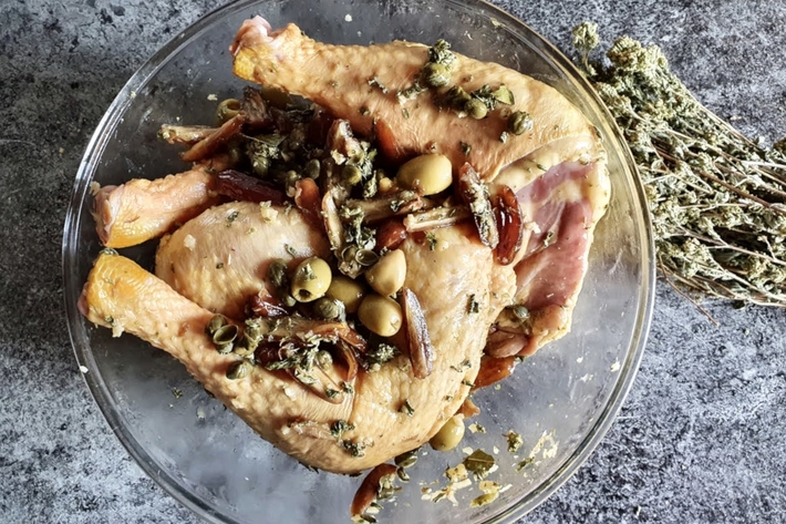 Si le temps de la marinade vous manque : massez les cuisses de poulet avec le sel et du poivre avant de les imprégner de la marinade (sans le sel et le poivre).