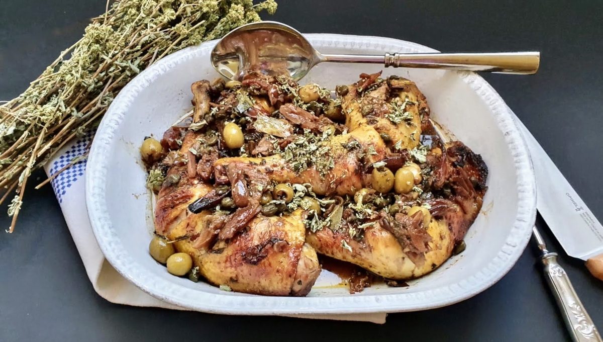 Ce plat est vraiment très facile à servir après une journée bien remplie. L’idéal est de faire mariner le poulet la veille ou l’avant-veille et de l’enfourner juste à l’arrivée des convives. Ottolenghi (encore lui !) s’est inspiré de Julee Rosso et Sheila Lukins, fondatrices du traiteur new-yorkais Silver Palate, et leur rend hommage. J’exprime, à mon tour, ma reconnaissance à tous.