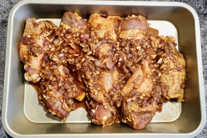 Une viande marinée à la sauce barbecue, c’est une valeur sûre entre amis. À mon ketchup maison, meilleur que celui du commerce, il a suffi d’ajouter de la sauce soja et du miel, mélange un peu barbare mais devenu classique, et de laisser mariner la viande dedans avec ail et oignon.