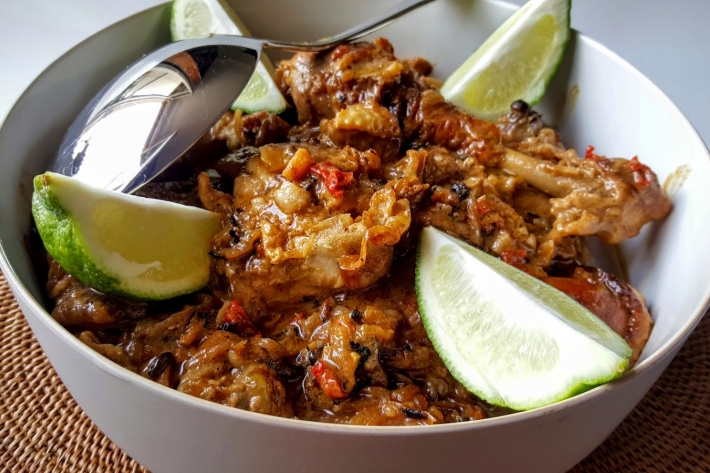 Très bonne recette qui change un peu. J’ai employé deux piments oiseaux et c’était juste un peu épicé et piquant. J’ai laissé du jus pour pouvoir arroser le riz dans les assiettes.