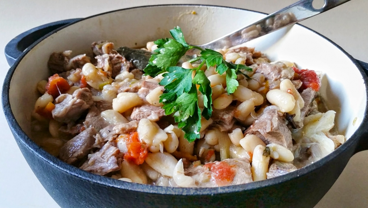 Retirez les tronçons de carotte des mogettes et ajoutez ces dernières (égouttées à travers une écumoire) dans la cocotte avec la viande (désossez les tranches de collier avant).
