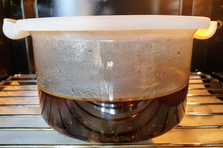 Si la casserole et le couvercle ne vont pas au four, transvasez dans un récipient qui aille au four.