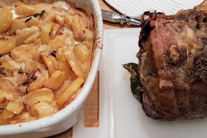 J’ai cuit la viande avec les oignons et les lardons dans un sac de cuisson, de sorte que le jus de cuisson s’est bien extrait à la cuisson.