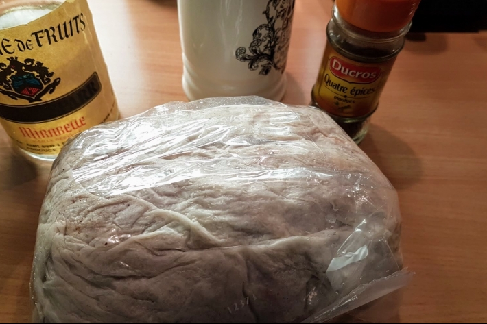 Une recette des Deux-Sèvres, toute simple, mais dont la subtilité repose dans une macération de la viande avec de l’eau de vie et des épices avant cuisson. Pour mieux respecter la cuisine locale, le cognac serait sans doute plus approprié et plus parfumé. Mais moins rustique, peut-être.