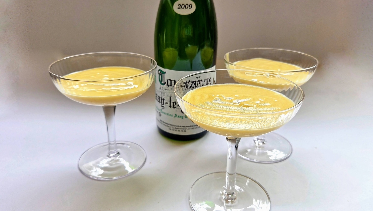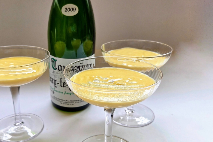 Un “must” des années quatre-vingt et “spécial trois ingrédients” : zabaglione, en italien. Mais ici, pas de marsala, trop fort à mon goût, mais un superbe vin de Touraine (cépages chenin blanc et grolleau), je ne vous dis que ça. Un bon gewurztraminer donne aussi satisfaction.