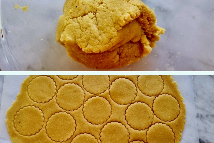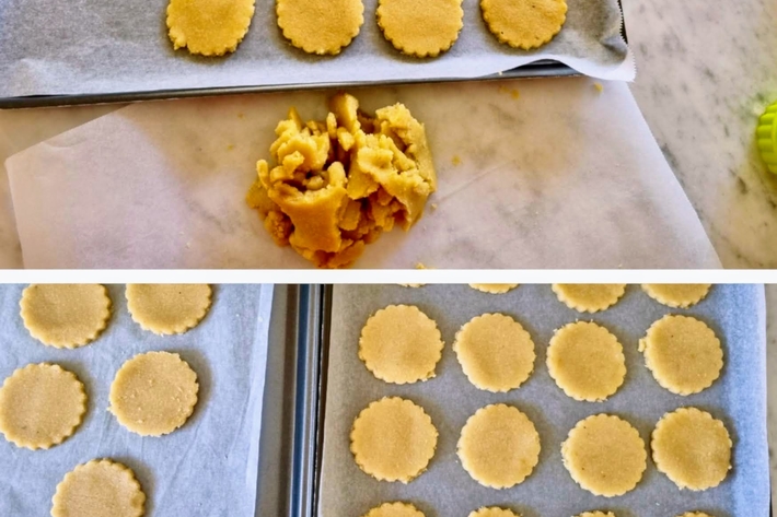 Formez des biscuits avec un emporte-pièce d’environ 6 centimètres de diamètre.