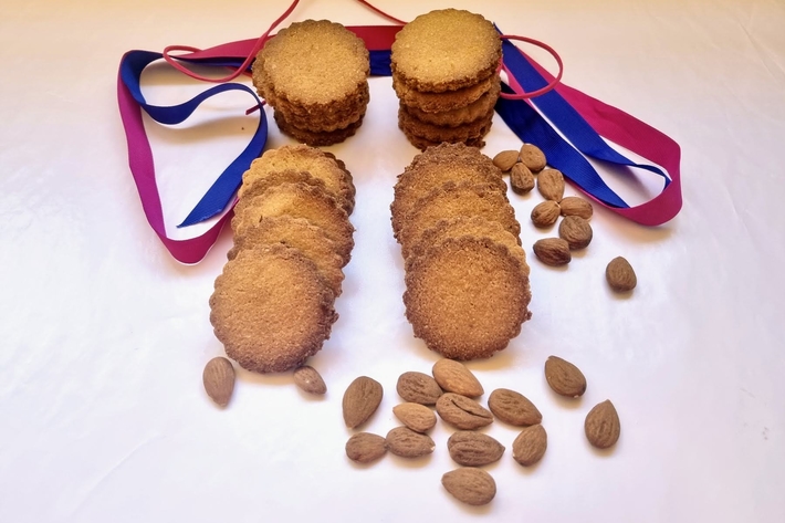 Ces irrésistibles sablés garantis sans gluten, partagés par Carole, du blog Alter Gusto, révèlent un arrière-goût de massepain. Et pour cause, la poudre d’amande en compose l’ingrédient principal (ce qui n’est pas, avouons-le, hyper-bon marché…). On n’y ajoute que peu de beurre et du sirop d’érable, soit trois ingrédients, qui dit mieux ?