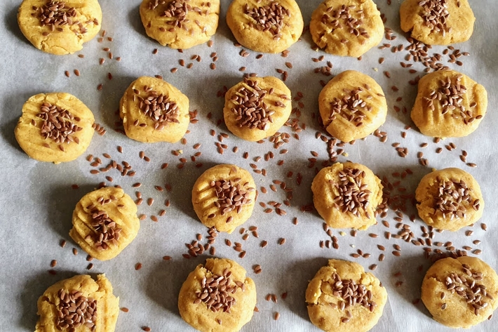 Déposez-les sur du papier cuisson, écrasez-les légèrement avec une fourchette et parsemez le dessus de graines de lin.
