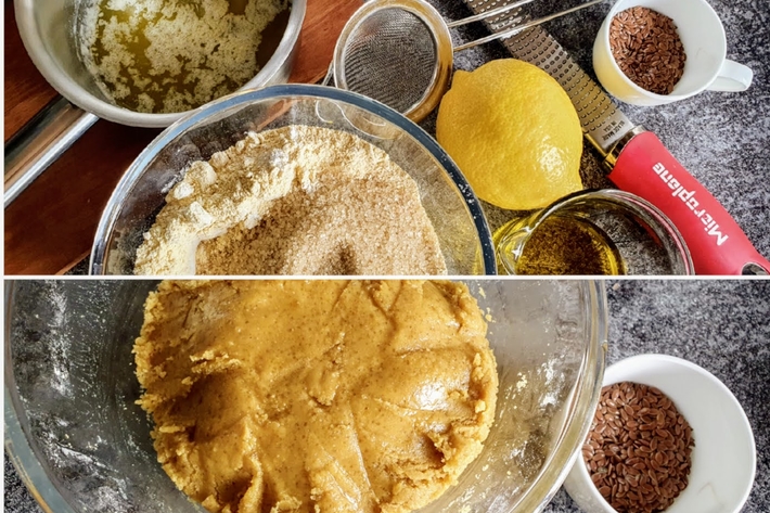Mélangez les farines avec le sucre dans un bol et râpez finement le zeste dessus.
