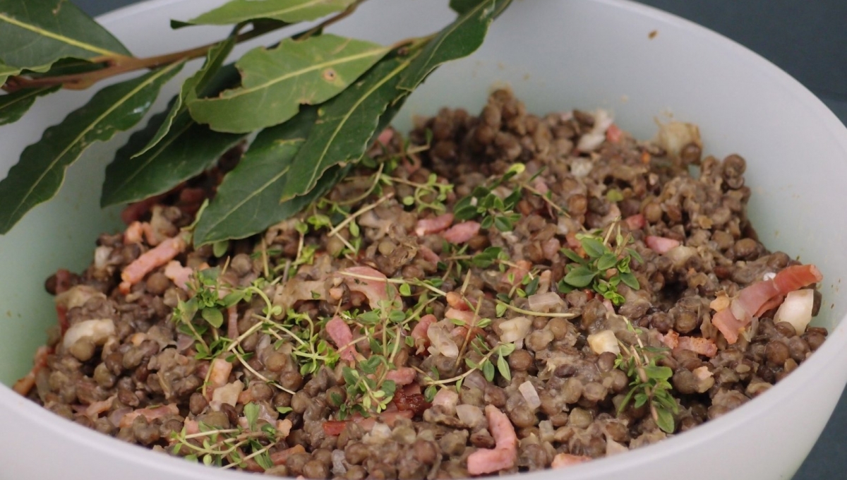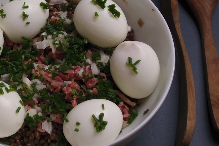 Un grand classique qui réjouit toujours les amis. Les lentilles, pleines de fer, sont en outre une bonne source de protéines végétales. L’échalote et les lardons rehaussent significativement cette salade de lentilles.