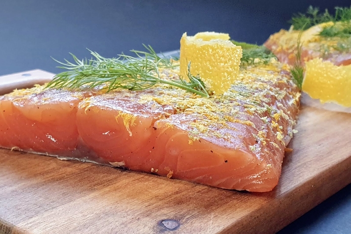 Rangez les tranches sur un plat avec quelques zestes d’agrumes et l’aneth.
