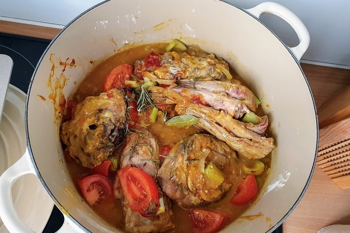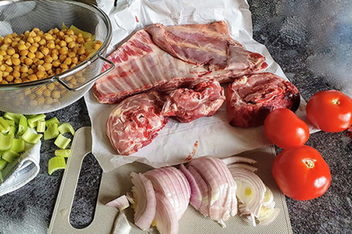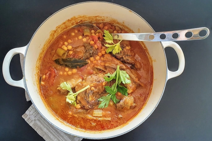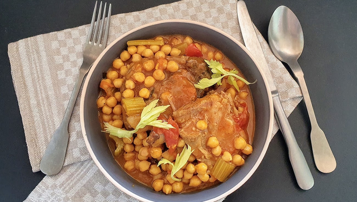 Confinement oblige, j’ai vidé mes placards. Dans lesquels se trouvaient des pois chiches crus, bio, et tout et tout. Il était encore possible d’aller se fournir à la boucherie, à distance respectable les uns des autres, et où personne ne me disputait ces bas morceaux d’agneau. Bien goûteux pourtant. Tout ça mijote gentiment pendant que vous télétravaillez dans la pièce voisine.