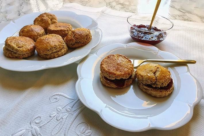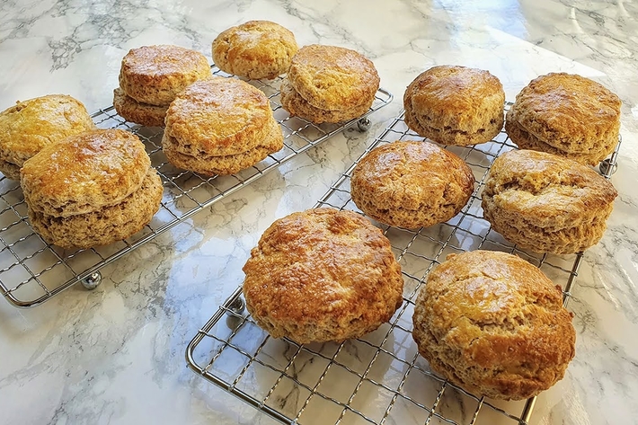 Si vous ne les consommez pas immédiatement, réchauffez les scones au grille-pain avant de les couper en deux.