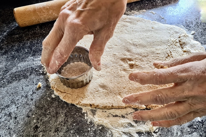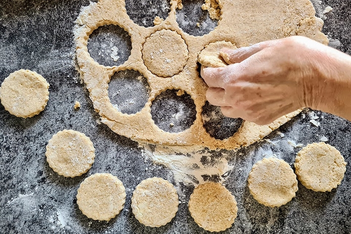 Découpez des disques avec un verre ou un emporte-pièce rond et cannelé.