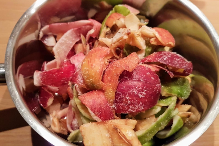 “On n’épluche pas 10-12 pommes tous les jours, alors congelez les épluchures au fur et à mesure et faites votre sirop de pommes quand vous en aurez suffisamment.”