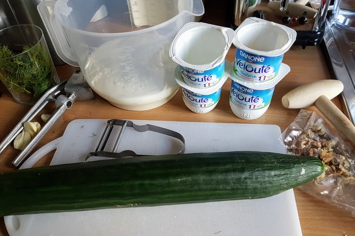 Il faut utiliser du vrai yaourt bulgare, en vente dans les épiceries bulgares. Sinon, ce ne sera pas du tarator. Les yaourts bulgares ont une bactérie unique au monde avec une acidité spécifique.