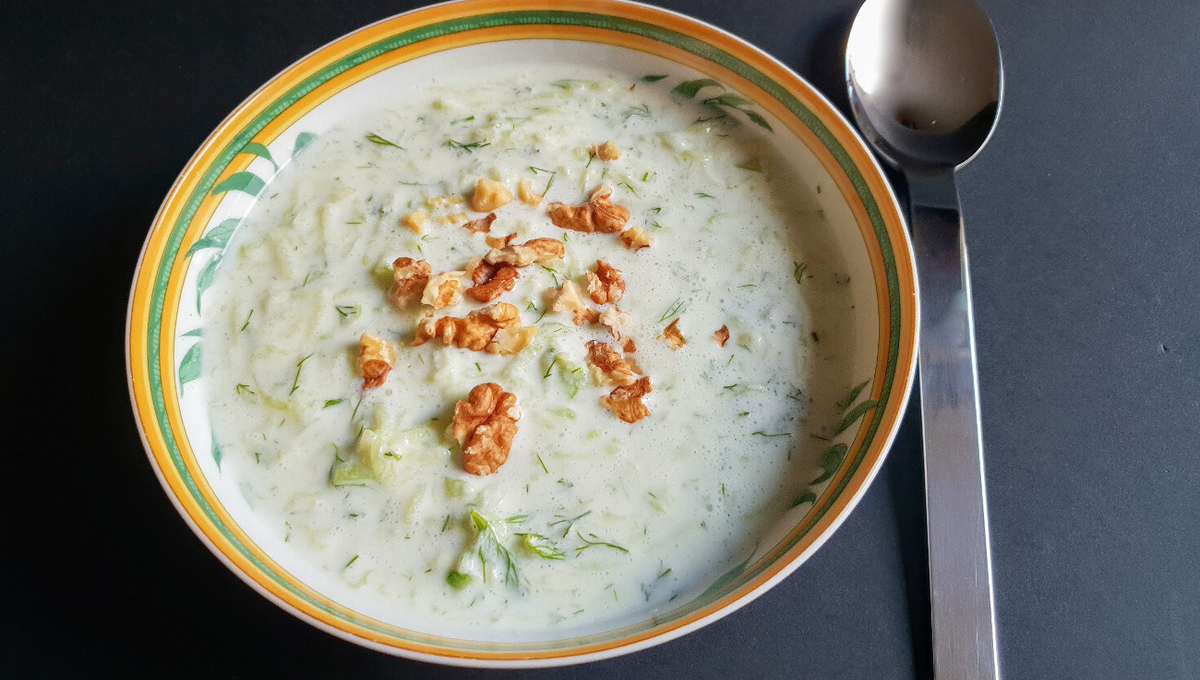 Le tarator (таратор en bulgare) est une soupe froide bulgare traditionnelle, à base de yaourt (bulgare, comme chacun sait) et de concombre, proche du tzatziki, mais pas tout à fait. Mon dentiste, d’origine bulgare, m’a expliqué sa recette. Bien sûr, vu la proximité de la Bulgarie et de la Grèce, la cuisine est proche, et on peut penser que, là, les Bulgares auraient influencé les Grecs. Mais, la présence d’aneth, et non de menthe, marque l’empreinte de l’Europe du Nord.