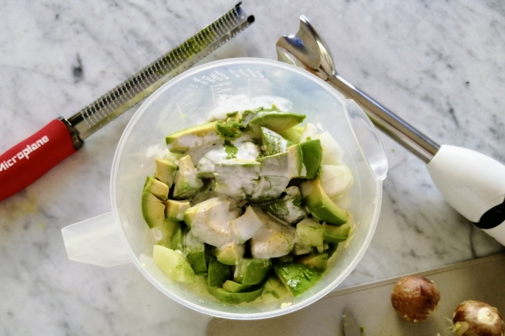 Lavez et essuyez le citron vert, râpez son zeste au-dessus du bol, pressez-en le jus et versez-le sur le tout.