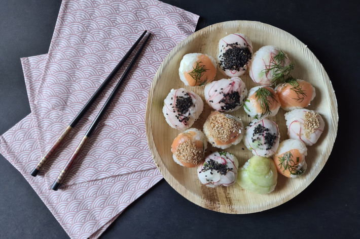 C’est encore Anne, du blog On dîne chez Nanou, qui m’a soufflé l’idée de ces sushi en forme de boulettes, une présentation très ludique et particulièrement appétissante. Donnez-vous tout de même le temps de les confectionner gaiement en famille. Vous vous en régalerez pour vos apéritifs de printemps.