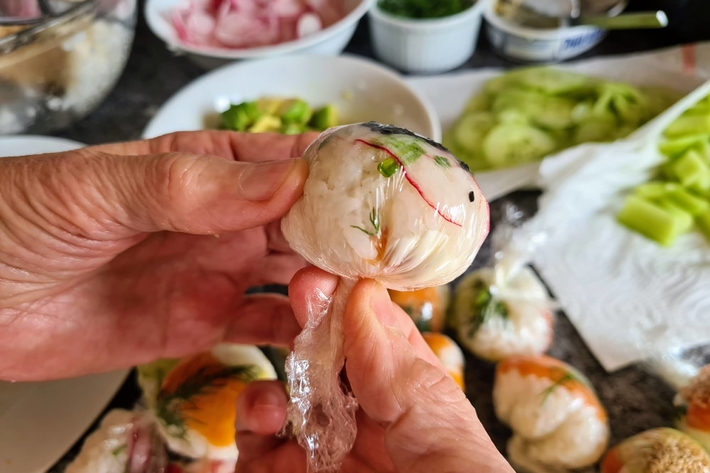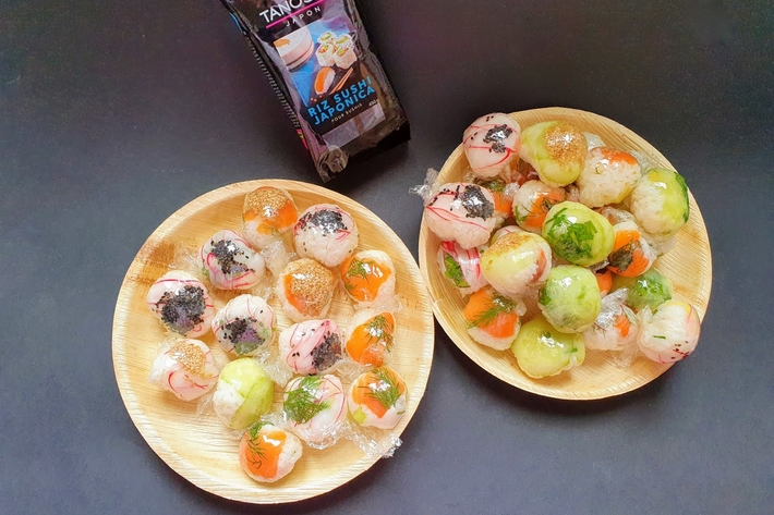 Gardez au frais jusqu’au moment de servir après avoir retiré le film de chaque sushi ball.