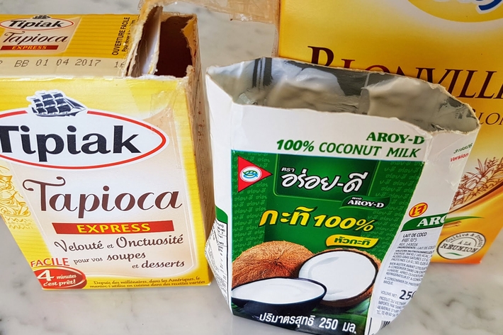 Portez le lait de coco à ébullition et versez le tapioca avec la cassonade.