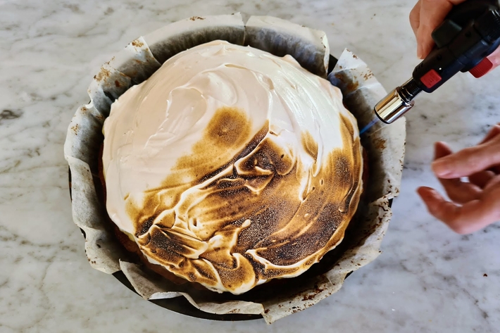Caramélisez la meringue à l’aide d’un chalumeau de cuisine.