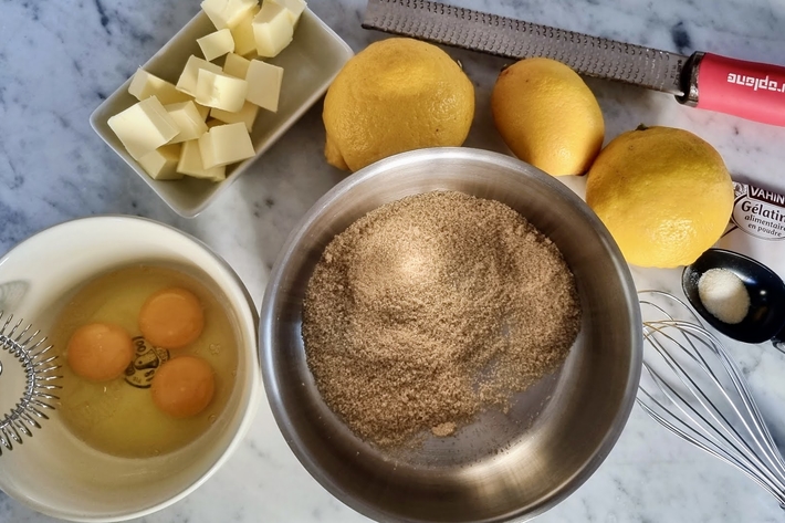 Faites chauffer doucement le jus des citrons, les zestes, le sucre et le beurre dans la casserole.