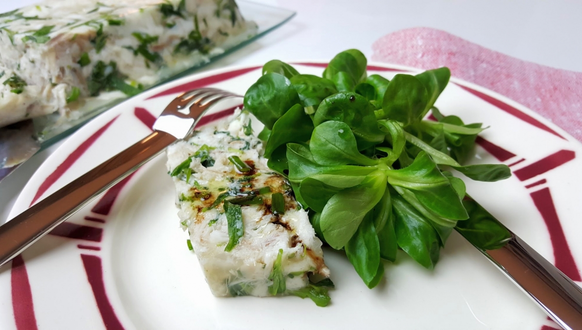 “Présentez cette terrine avec une simple vinaigrette à la ciboulette, composée de bon vinaigre balsamique et d’huile d’olive de qualité. Vous pouvez aussi proposer un yaourt brassé mélangé à une cuillerée à soupe d’huile d’olive et des fines herbes ciselées.”