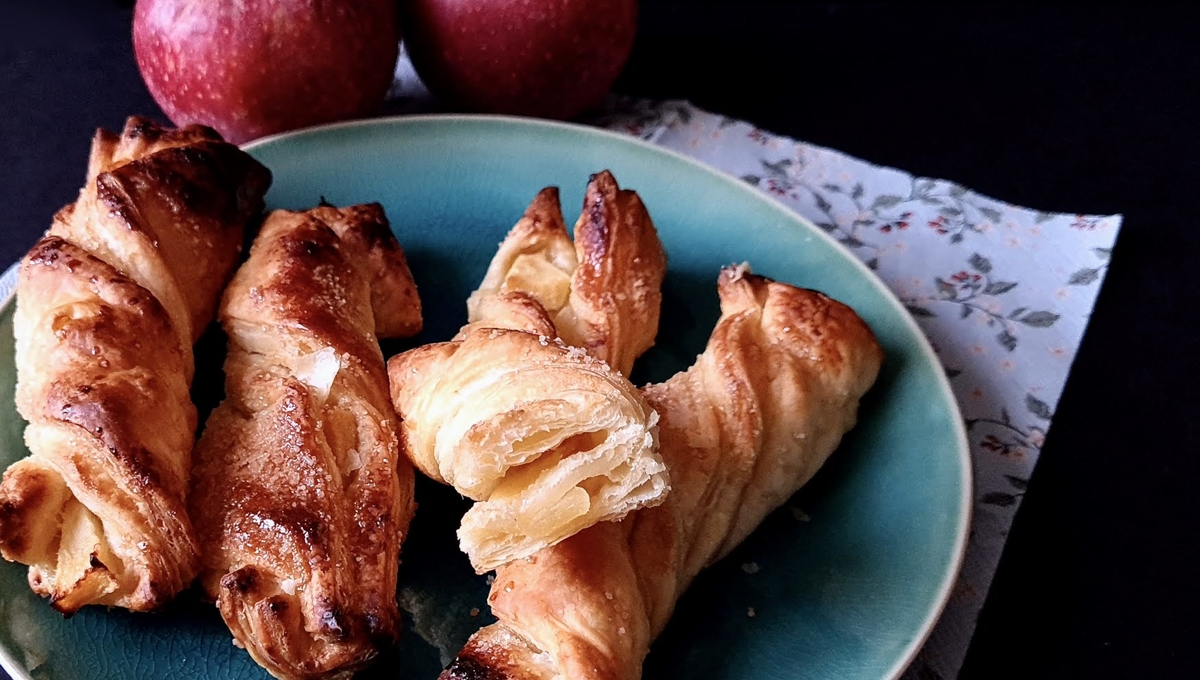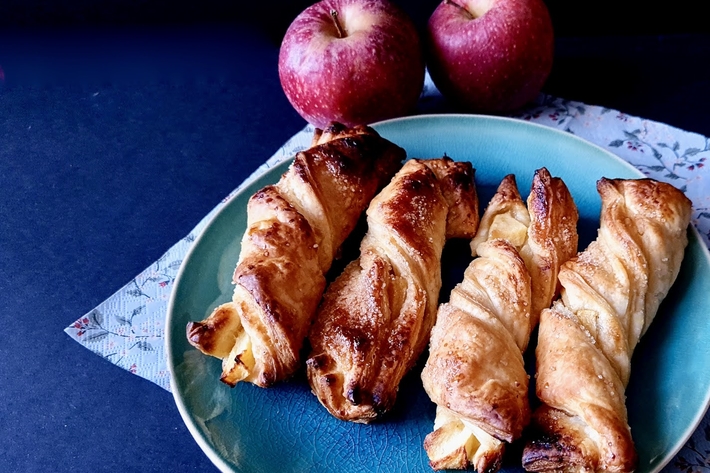 Cette recette express ultra-simple vient d’un petit tutoriel d’arte_in_cucina, sur Instagram. Il vous suffit de pâte feuilletée (du commerce), d’une pomme et d’un peu de sucre. Idéal pour le goûter des enfants après les avoir fait participer.