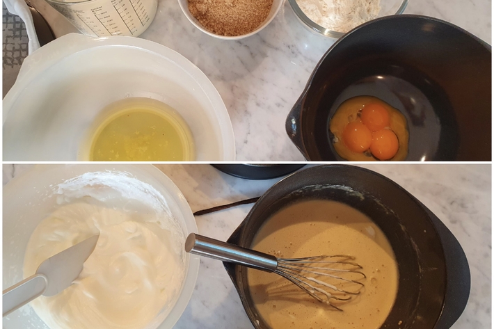 Fouettez les jaunes avec le sucre jusqu’à ce que le mélange blanchisse.
