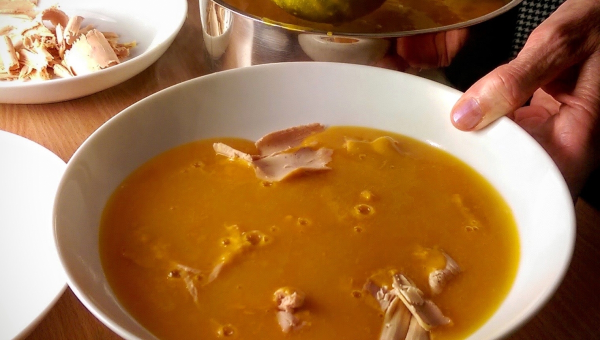 “En règle générale, on n’est pas obligé d’éplucher le potimarron, mais pour ce velouté, mieux vaut mettre toutes ses chances de son côté.”