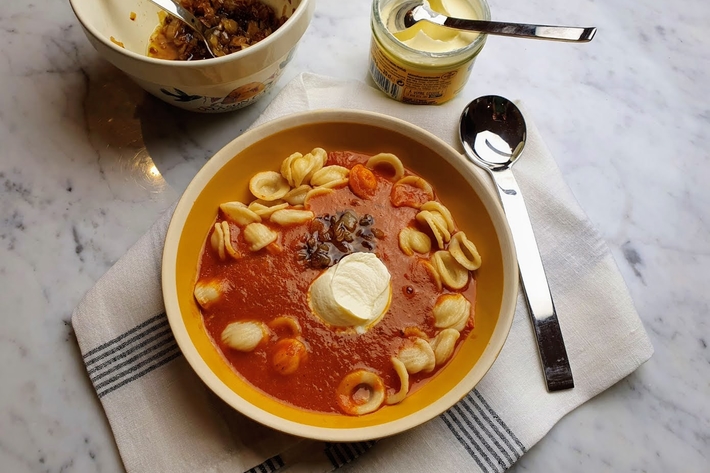 La rubrique cuisine du “Guardian” du 12 septembre 2020, était consacrée à trois soupes à la tomate de Yotam Ottolenghi. En voici une première. Pour lui, les tomates de fin de saison semblent avoir doucement cuit dans la chaleur résiduelle de l’été : “Faites-en bon usage – vous ne les reverrez pas avant un an. Et il n’y a pas de meilleure façon de faire cela que de faire de la soupe”, ajoute-t-il.