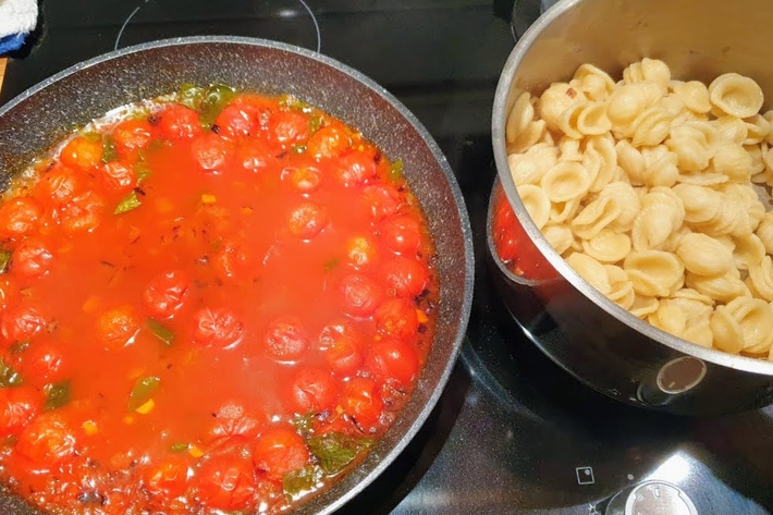 Faites cuire les orecchiette pendant ce temps dans une grande casserole d’eau bouillante salée jusqu’à ce qu’elles soient al dente (environ 9 minutes, selon la notice du paquet de pâtes)