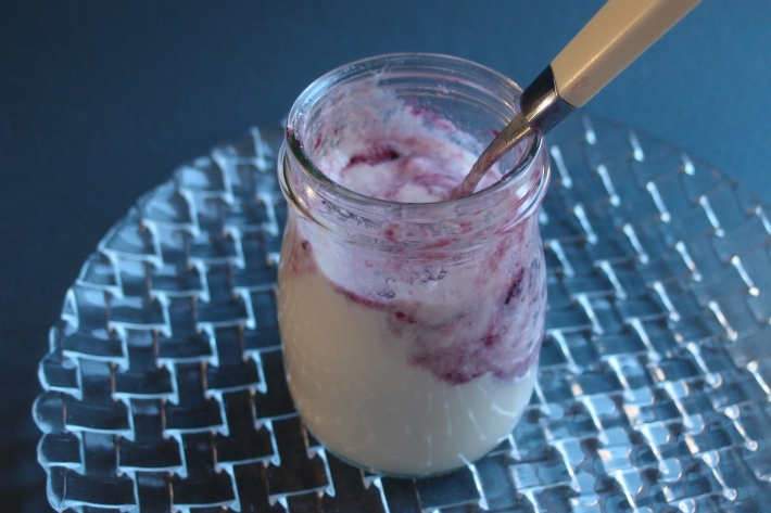 Mélangez bien le yaourt et la poudre de lait avec le lait chaud. La température tombera autour de 45°.